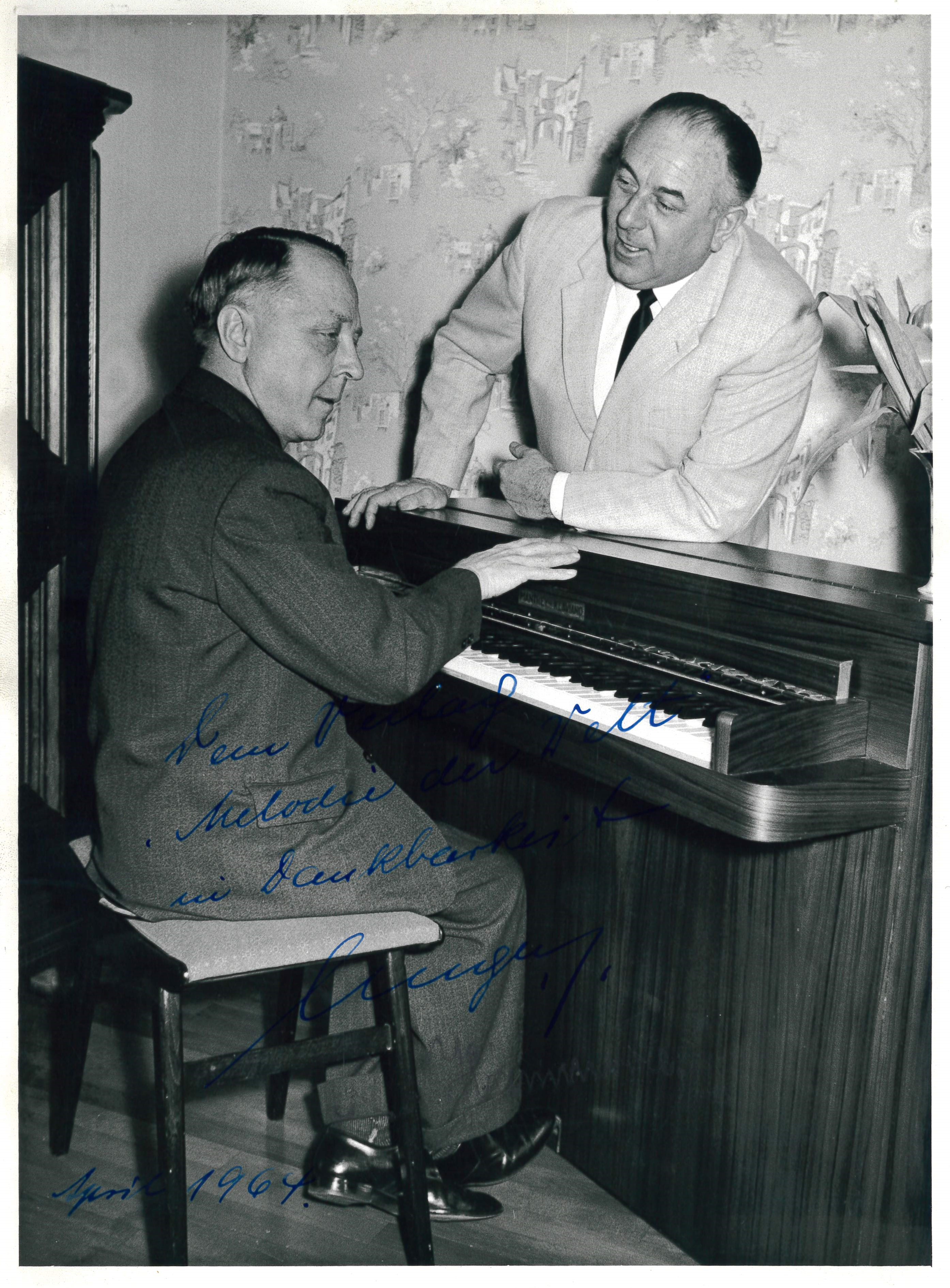 Bestseller: Das Autoren-Duo Hans Lang und Erich Meder verfassen Kassenschlager wie „Tango der Nacht“ aus dem Film „Straßenserenade“ und „Uno momento Maria“.