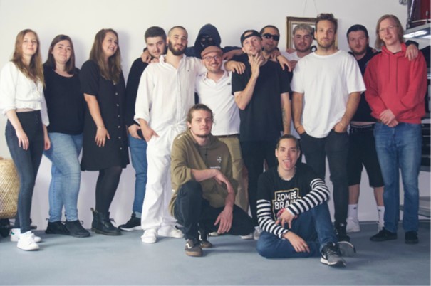 hinten v.l.n.r.: Hanna Derber (Ever Ever Music), Lena Leick (Ever Ever Music), Nicole Giesa (Ever Ever Music), BroyS (Factoree), Scutta (Factoree), Lucy (Tiavo), Deon (Tiavo), Tim Schoon (Side By Side Future), Matteo Schwanengel (Side By Side Future); vorne v.l.n.r.: Benjamin Factor (Factoree), Carmelo Lo Porto (Ever Ever Music), Audiohenta! (Factoree), Lukas Adamidis (Side By Side Management); sitzend v.l.n.r.: Johnny Carrera (Factoree), Trip-Tamine (Factoree)